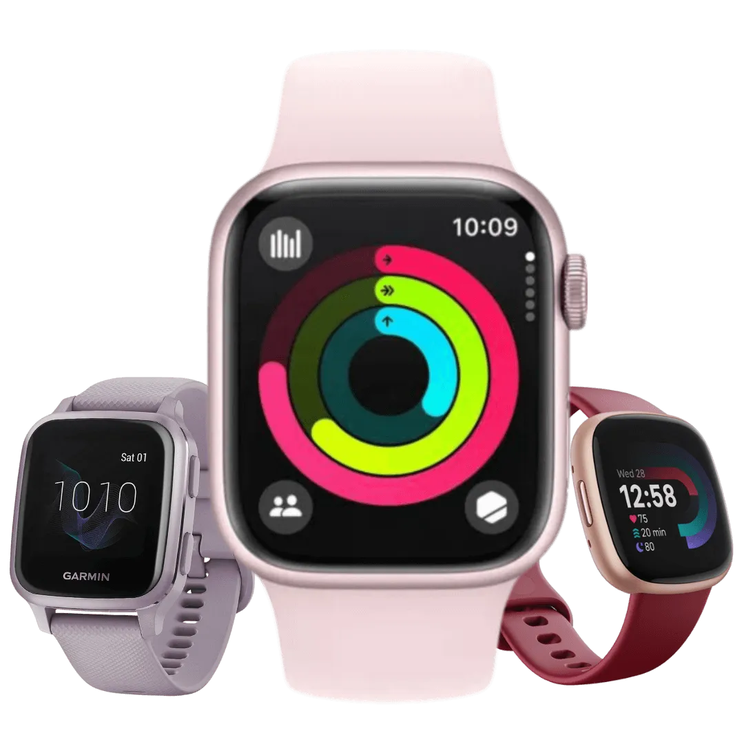 Simplifica el seguimiento de tu progreso al integrar nuestra app con tus smartwatch favorito: Apple Health, Google Fit, Garmin y Fitbit.